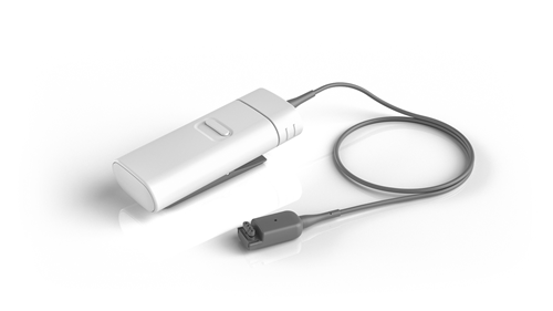 Lorsque les porteurs d’implants se déplacent, le chargeur portable Cochlear™ leur permet de charger leur processeur tout en continuant à l'utiliser. Ce dispositif est en option.
